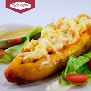 “El dulce trato que mereces” es su lema, en Dolce Affare podrás encontrar un lugar cómodo, tranquilo y con buena música para degustar de unas deliciosas canoas de plátano maduro rellenas de diferentes opciones como: camarón, carne o pollo. ¡Están deliciosas! Combina tu canoa preferida con un delicioso frappé.